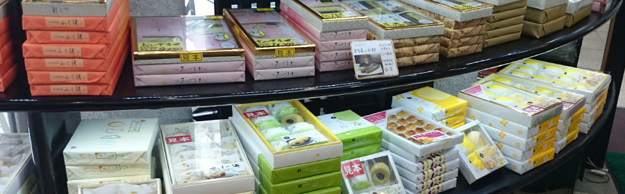 かまぼこ、ちくわ、うに、ふぐ珍味、ふぐ刺(直送)、葉わさび漬、銘菓、ご当地アクセサリ、煙草