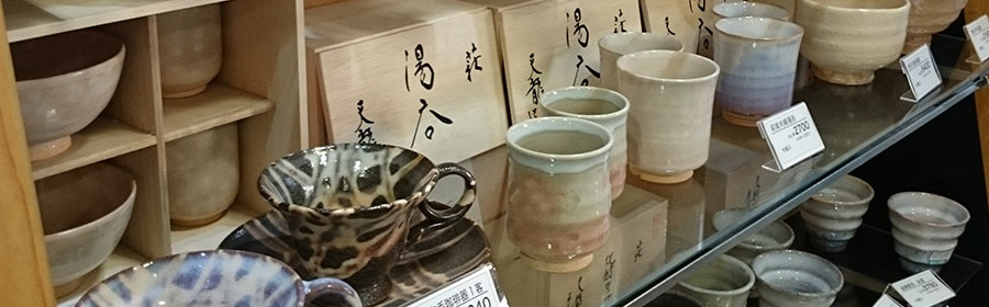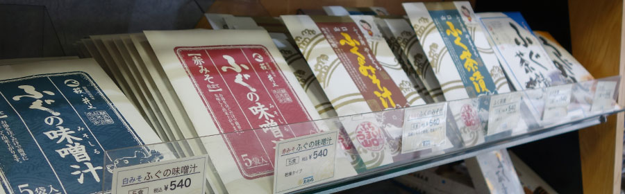 かまぼこ、ちくわ、うに、ふぐ珍味、ふぐ刺(直送)、葉わさび漬、銘菓、ご当地アクセサリ、萩焼、大内人形、ハリセンボンちょうちん